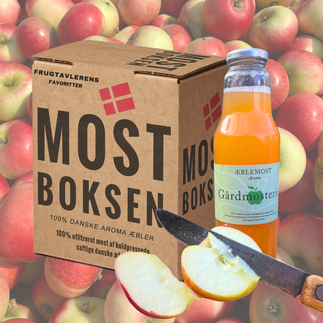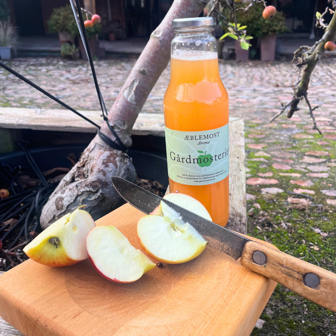 En limited edition æblemost lavet på 100 % danske Aroma-æbler fra vores egne træer her på Sydfyn.